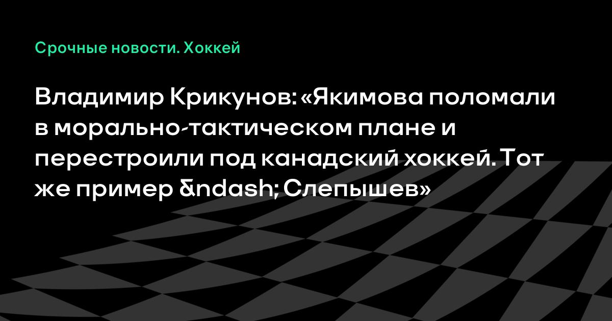 Владимир Крикунов: «Якимова поломали в морально-тактическом плане и перестроили под канадский хоккей. Тот же пример – Слепышев»