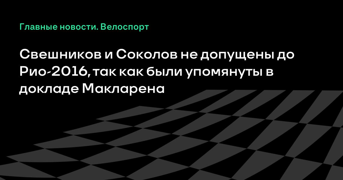 Свешников и Соколов не допущены до Рио-2016, так как были упомянуты в докладе Макларена