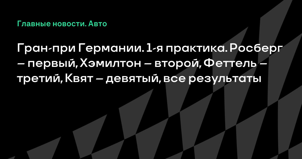 Гран-при Германии. 1-я практика. Росберг – первый, Хэмилтон – второй, Феттель – третий, Квят – девятый, все результаты
