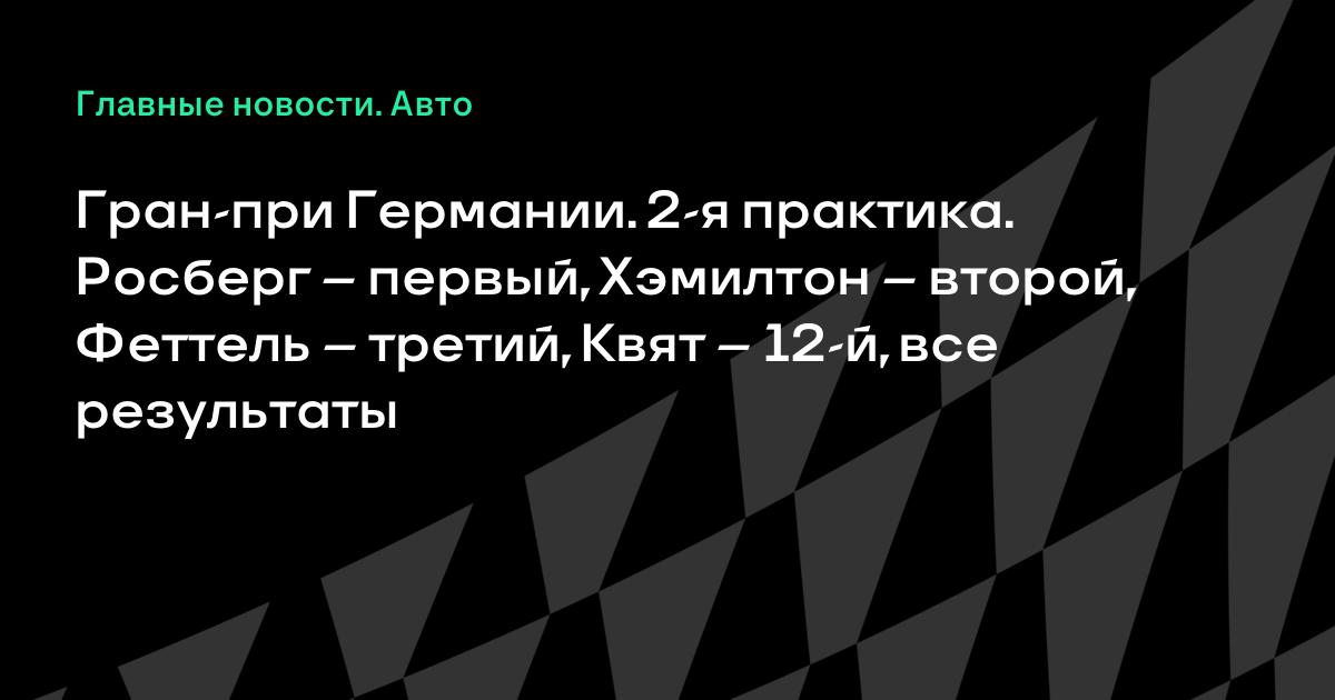 Гран-при Германии. 2-я практика. Росберг – первый, Хэмилтон – второй, Феттель – третий, Квят – 12-й, все результаты