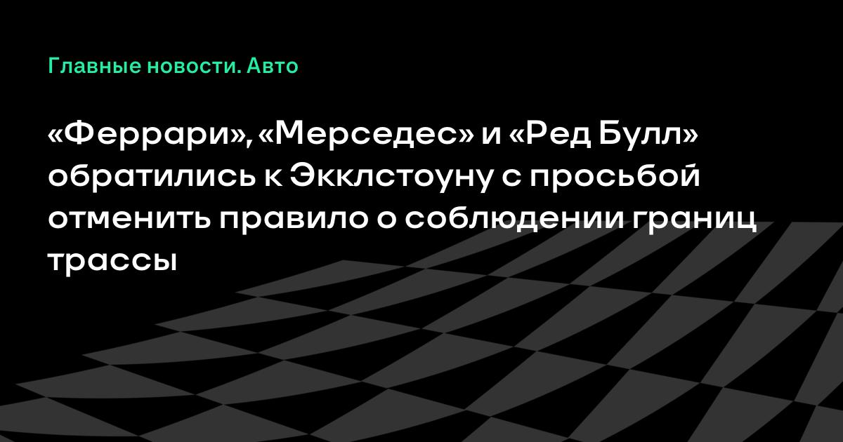 Команды «Мерседес», «Феррари» и «Ред Булл» обратились к промоутеру «Формулы-1» с жалобой на решение ФИА оставить в силе спорное правило, согласно которому гонщики должны соблюдать границы трассы в тех местах, где за счет более широкой траектории можно получить преимущество, сообщает motorsport.