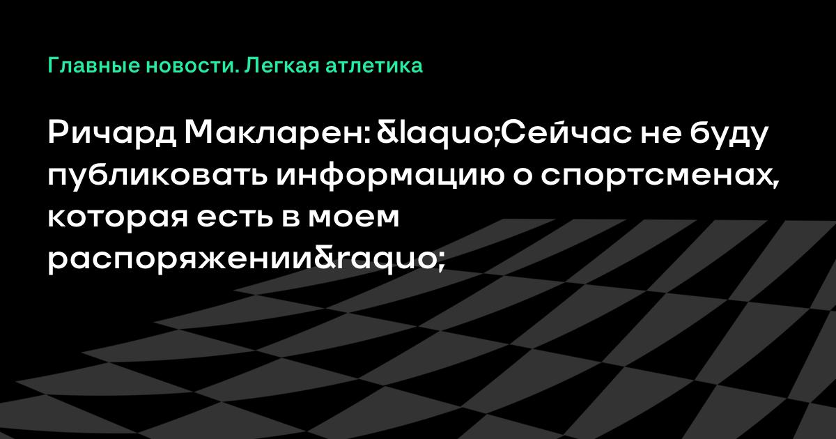 В данный момент я не буду публиковать информацию о любых спортсменах, которая есть в моем распоряжении, потому что это скомпрометирует продолжающееся расследование. Однако я передал WADA имена спортменов, чьи допинг-пробы мочи были частью государственной системы по скрытию положительных тестов. WADA передало эту информацию международным федерациям», – говорится в заявлении Макларена.