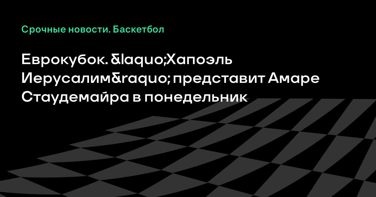 Еврокубок. «Хапоэль Иерусалим» представит Амаре Стаудемайра в понедельник