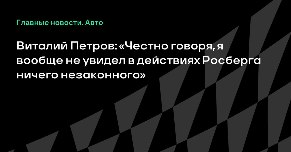 Виталий Петров: «Честно говоря, я вообще не увидел в действиях Росберга ничего незаконного»