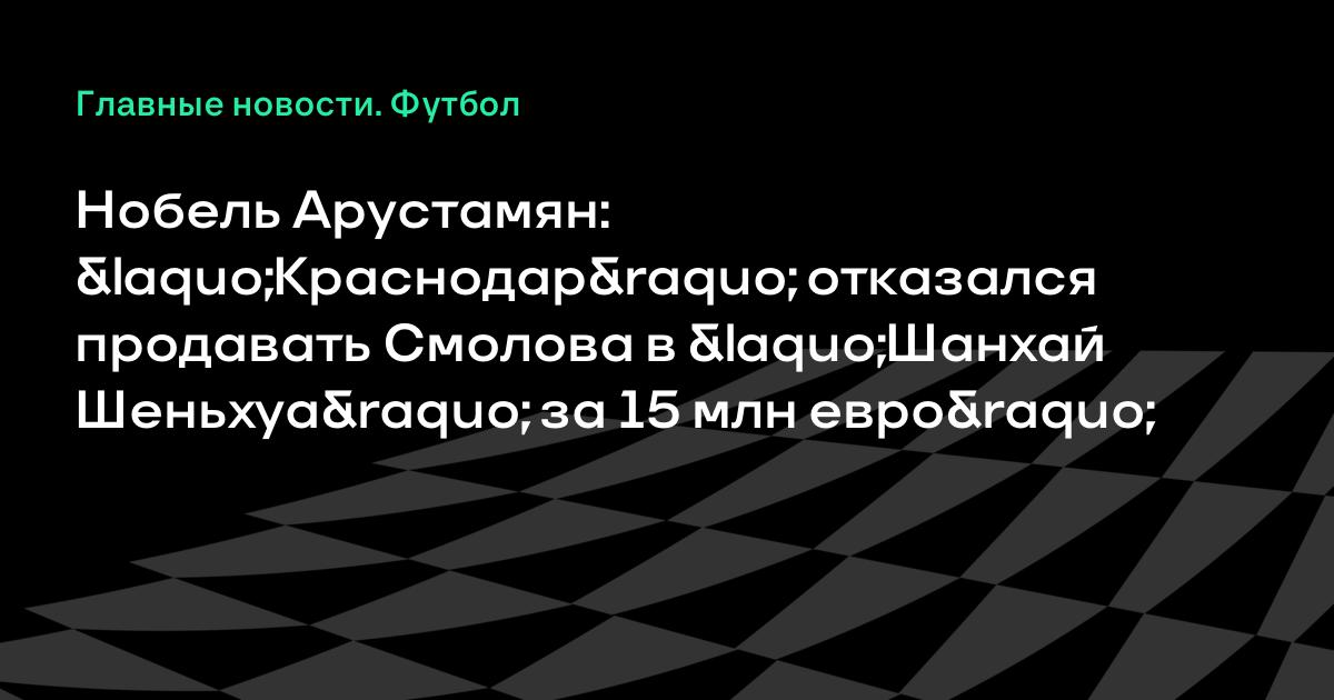 Нобель Арустамян: «Краснодар» отказался продавать Смолова в «Шанхай Шеньхуа» за 15 млн евро»