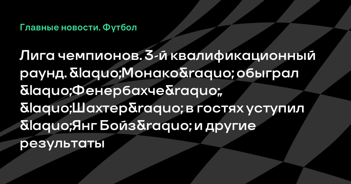 Лига чемпионов. 3-й квалификационный раунд. «Монако» обыграл «Фенербахче», «Шахтер» в гостях уступил «Янг Бойз» и другие результаты
