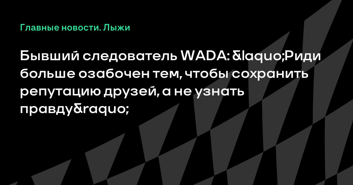 Бывший следователь WADA: «Риди больше озабочен тем, чтобы сохранить репутацию друзей, а не узнать правду»