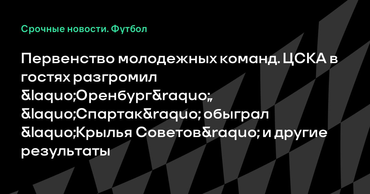 Первенство молодежных команд. ЦСКА в гостях разгромил «Оренбург», «Спартак» обыграл «Крылья Советов» и другие результаты