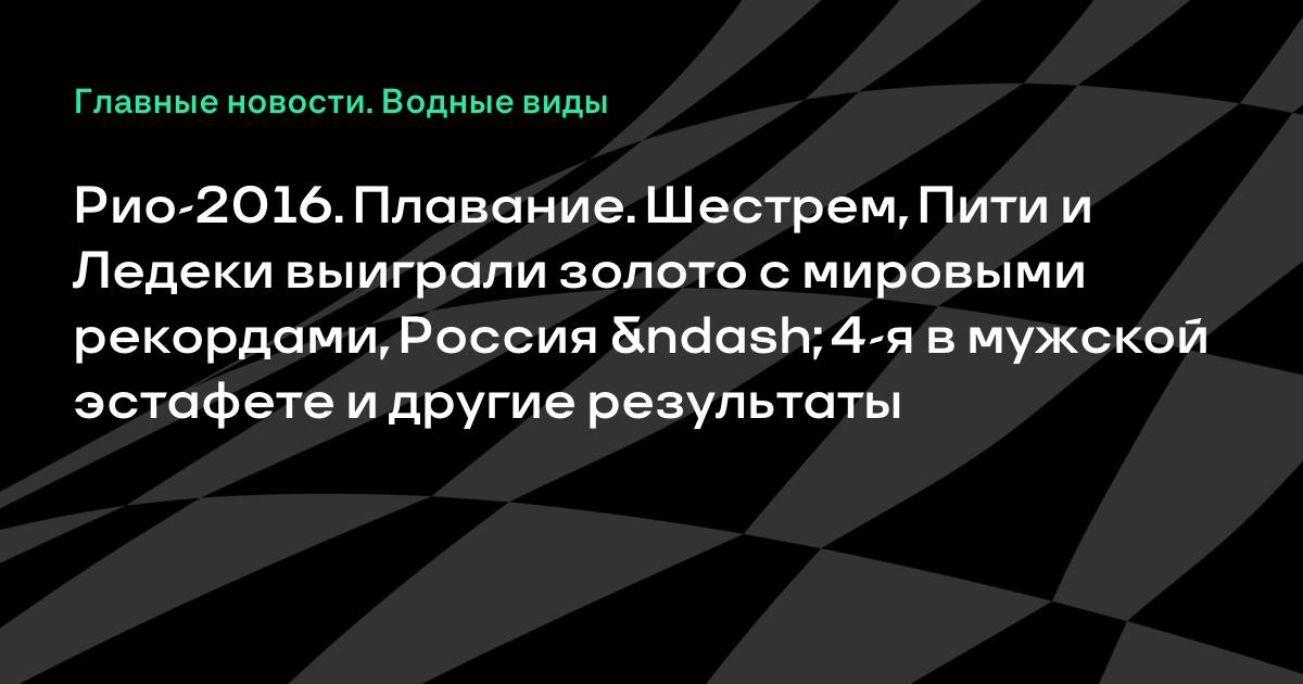 Рио-2016. Плавание. Шестрем, Пити и Ледеки выиграли золото с мировыми рекордами, Россия – 4-я в мужской эстафете и другие результаты