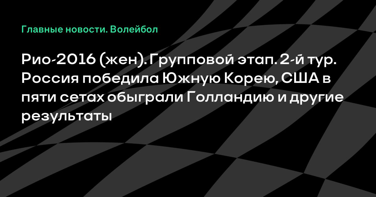 Рио-2016 (жен). Групповой этап. 2-й тур. Россия победила Южную Корею, США в пяти сетах обыграли Голландию и другие результаты