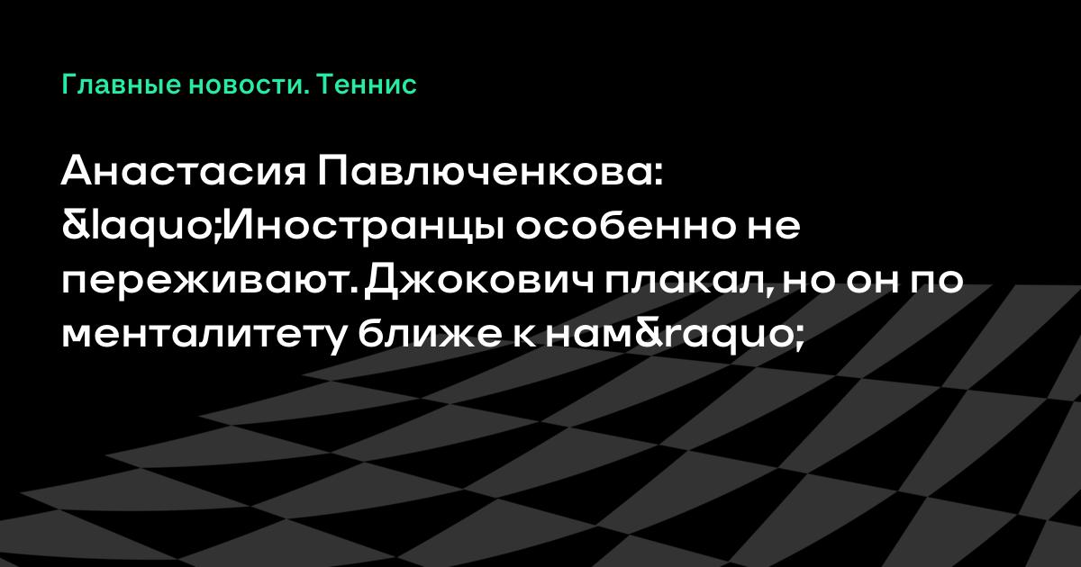 Анастасия Павлюченкова: «Иностранцы особенно не переживают. Джокович плакал, но он по менталитету ближе к нам»