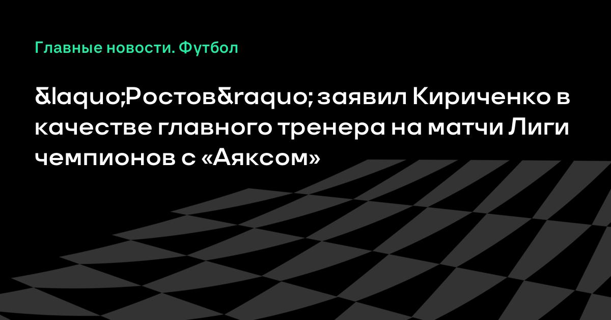 «Ростов» заявил Кириченко в качестве главного тренера на матчи Лиги чемпионов с «Аяксом»