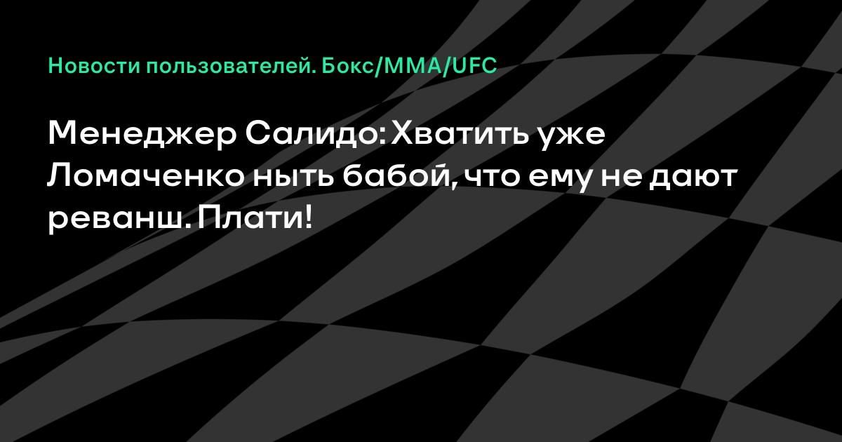 Менеджер Салидо: Хватить уже Ломаченко ныть бабой, что ему не дают реванш. Плати!