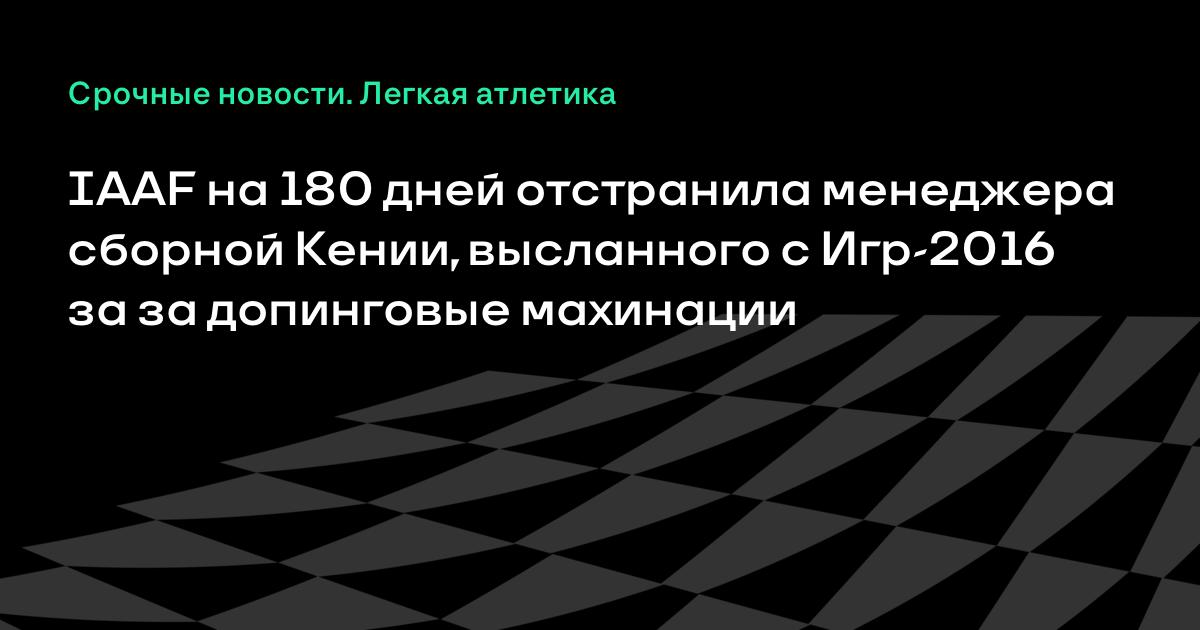 IAAF на 180 дней отстранила менеджера сборной Кении, высланного с Игр-2016 за за допинговые махинации