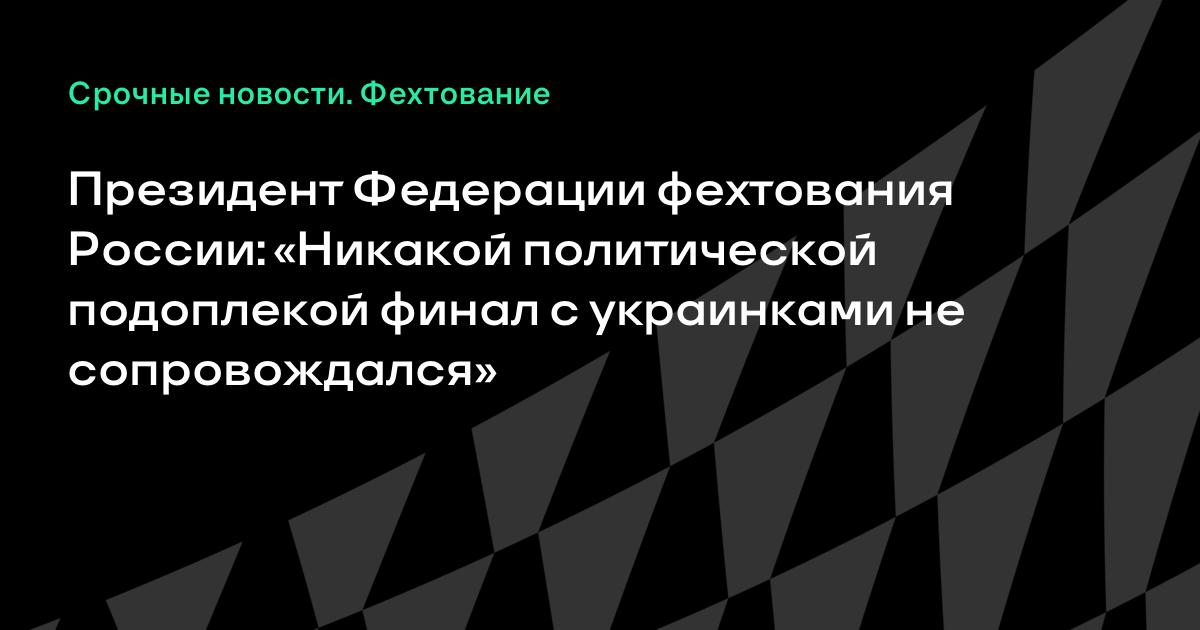 Президент Федерации фехтования России: «Никакой политической подоплекой финал с украинками не сопровождался»