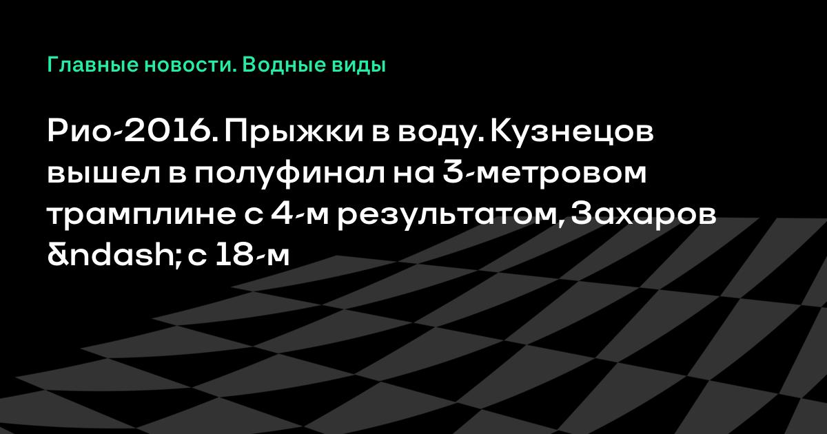 Сегодня в прыжках в воду на Играх-2106 прошли предварительные соревнования у мужчин на 3-метровом трамплине. Россиянин Евгений Кузнецов стал 4-м, Илья Захаров – 18-м. Оба спортсмена квалифицировались в полуфинал.