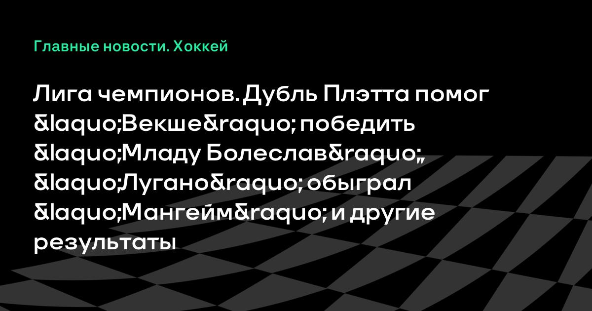 Лига чемпионов. Дубль Плэтта помог «Векше» победить «Младу Болеслав», «Лугано» обыграл «Мангейм» и другие результаты