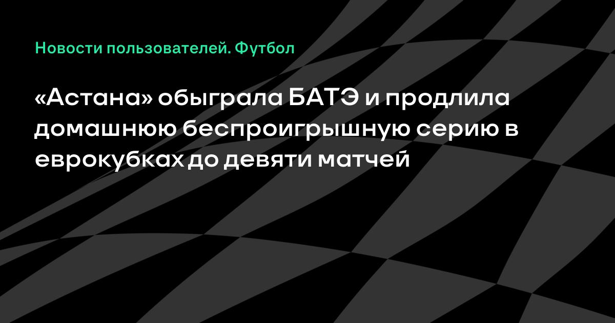 «Астана» обыграла БАТЭ и продлила домашнюю беспроигрышную серию в еврокубках до девяти матчей