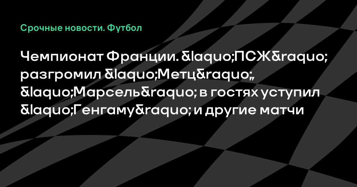 Чемпионат Франции. «ПСЖ» разгромил «Метц», «Марсель» в гостях уступил «Генгаму» и другие матчи