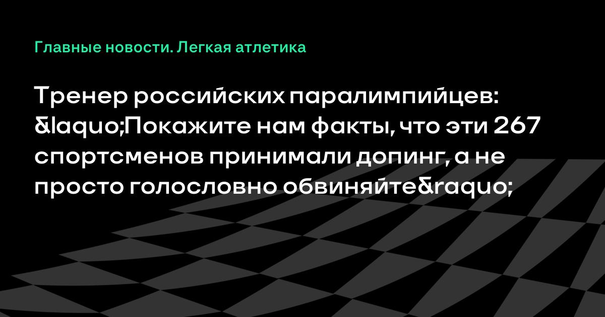 Тренер российских паралимпийцев: «Покажите нам факты, что эти 267 спортсменов принимали допинг, а не просто голословно обвиняйте»