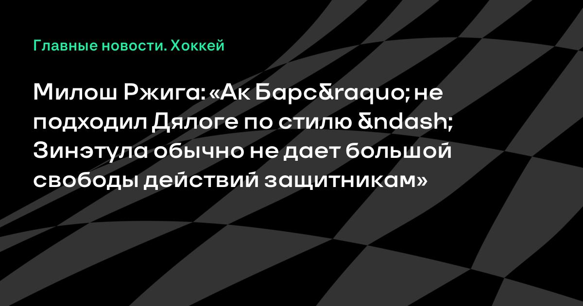 Милош Ржига: «Ак Барс» не подходил Дялоге по стилю – Зинэтула обычно не дает большой свободы действий защитникам»