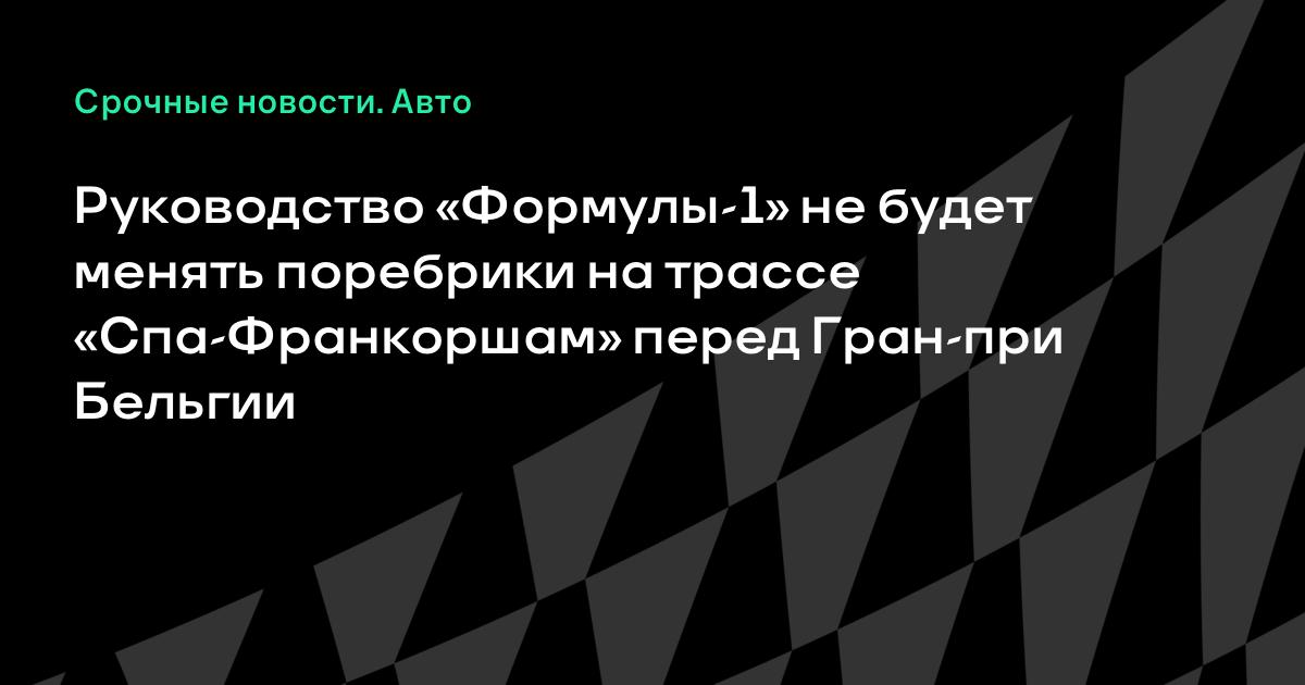 Руководство «Формулы-1» приняло решение не вносить изменения в поребрики на трассе «Спа-Франкоршам» в преддверии Гран-при Бельгии, сообщает motorsport.