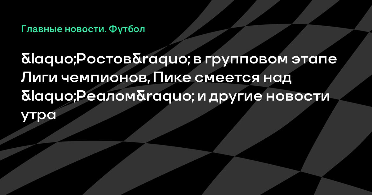 «Ростов» в групповом этапе Лиги чемпионов, Пике смеется над «Реалом» и другие новости утра