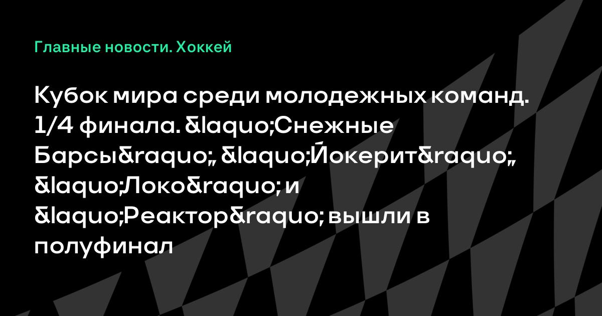 Кубок мира среди молодежных команд. 1/4 финала. «Снежные Барсы», «Йокерит», «Локо» и «Реактор» вышли в полуфинал