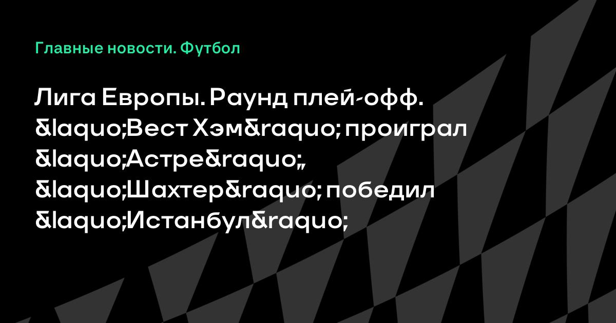 Лига Европы. Раунд плей-офф. «Вест Хэм» проиграл «Астре», «Шахтер» победил «Истанбул»