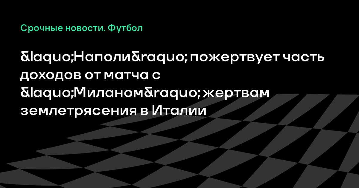 Я решил пожертвовать часть доходов от матча «Наполи» – «Милан» жертвам. Как будут использованы эти средства, будет принято совместно с госслужбами», – сообщил Де Лаурентис.