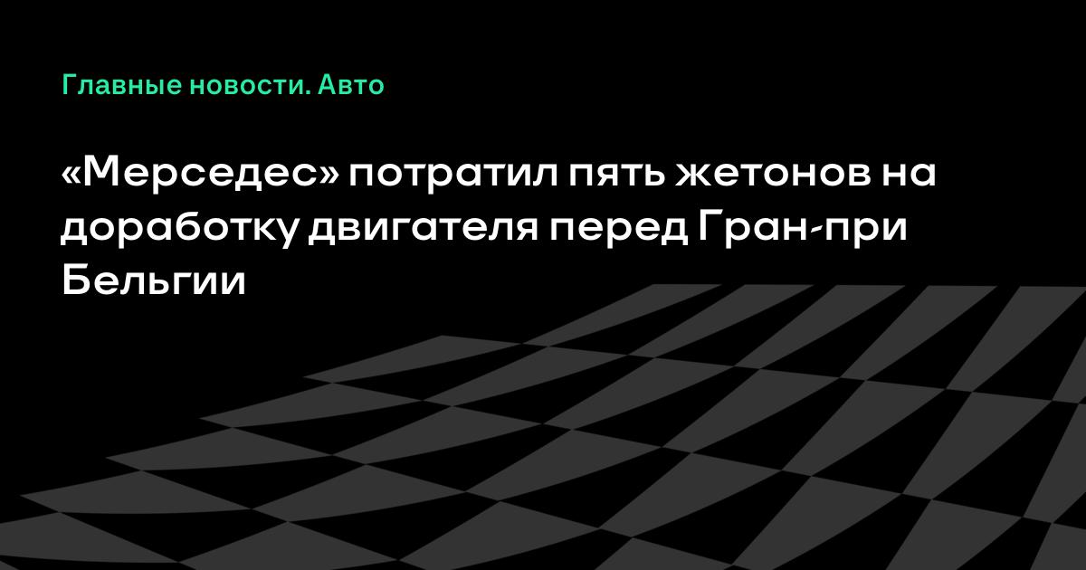 Команда «Мерседес» сообщила, что перед Гран-при Бельгии потратила пять жетонов на доработку своего двигателя. Жетоны были потрачены на обновление двигателя внутреннего сгорания, турбокомпрессора, а также генераторов MGU-K и MGU-H, сообщает GP Update.