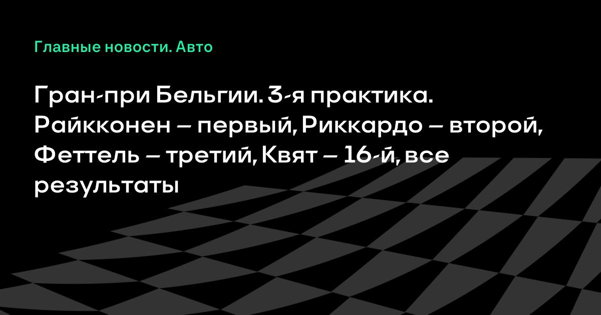 Гран-при Бельгии. 3-я практика. Райкконен – первый, Риккардо – второй, Феттель – третий, Квят – 16-й, все результаты