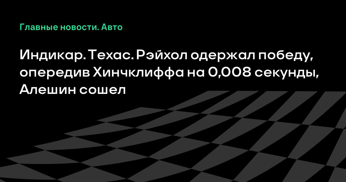 Индикар. Техас. Рэйхол одержал победу, опередив Хинчклиффа на 0,008 секунды, Алешин сошел