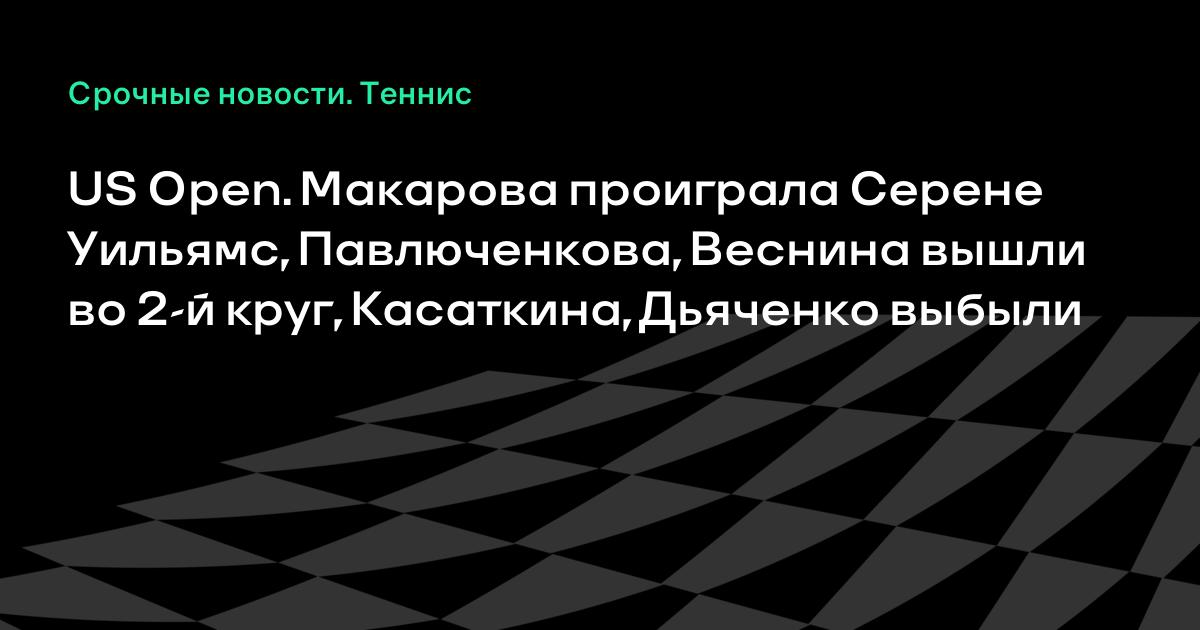 US Open. Макарова проиграла Серене Уильямс, Павлюченкова, Веснина вышли во 2-й круг, Касаткина, Дьяченко выбыли