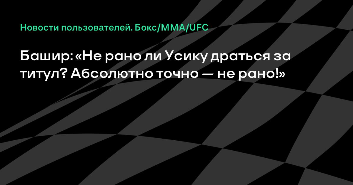 Башир: «Не рано ли Усику драться за титул? Абсолютно точно — не рано!»