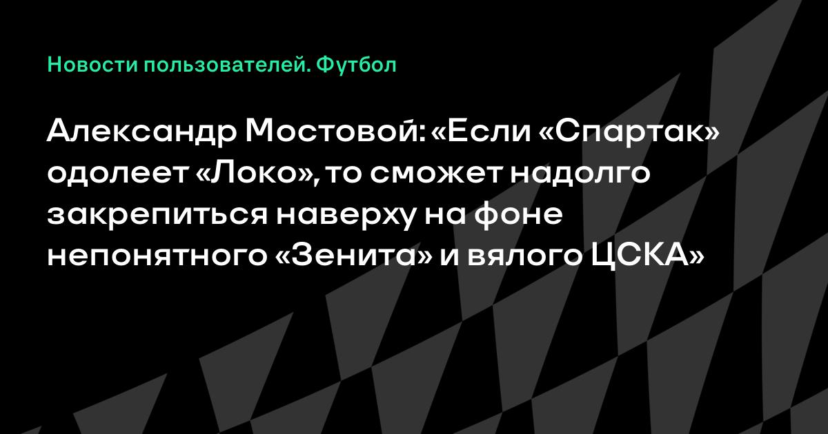 Александр Мостовой: «Если «Спартак» одолеет «Локо», то сможет надолго закрепиться наверху на фоне непонятного «Зенита» и вялого ЦСКА»