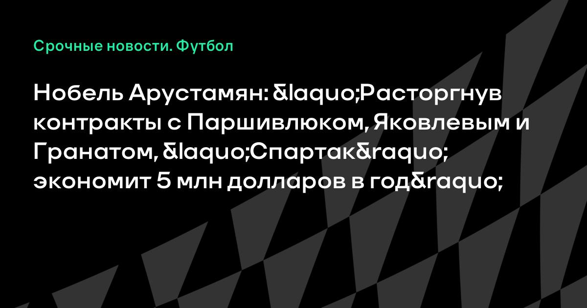 Нобель Арустамян: «Расторгнув контракты с Паршивлюком, Яковлевым и Гранатом, «Спартак» экономит 5 млн долларов в год»