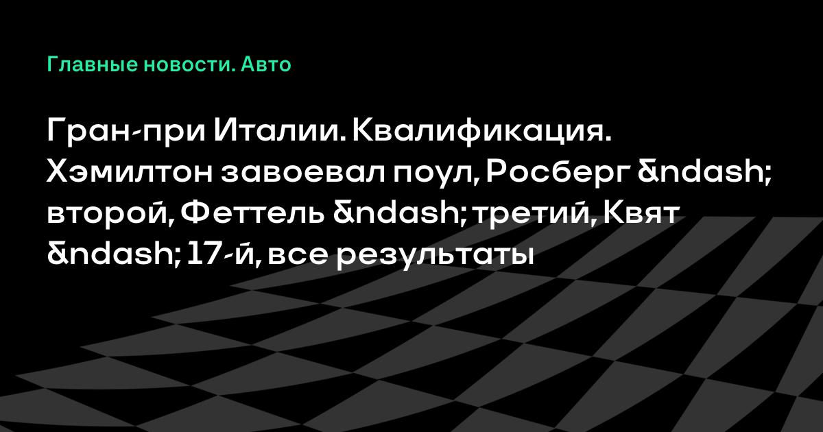 Гран-при Италии. Квалификация. Хэмилтон завоевал поул, Росберг – второй, Феттель – третий, Квят – 17-й, все результаты