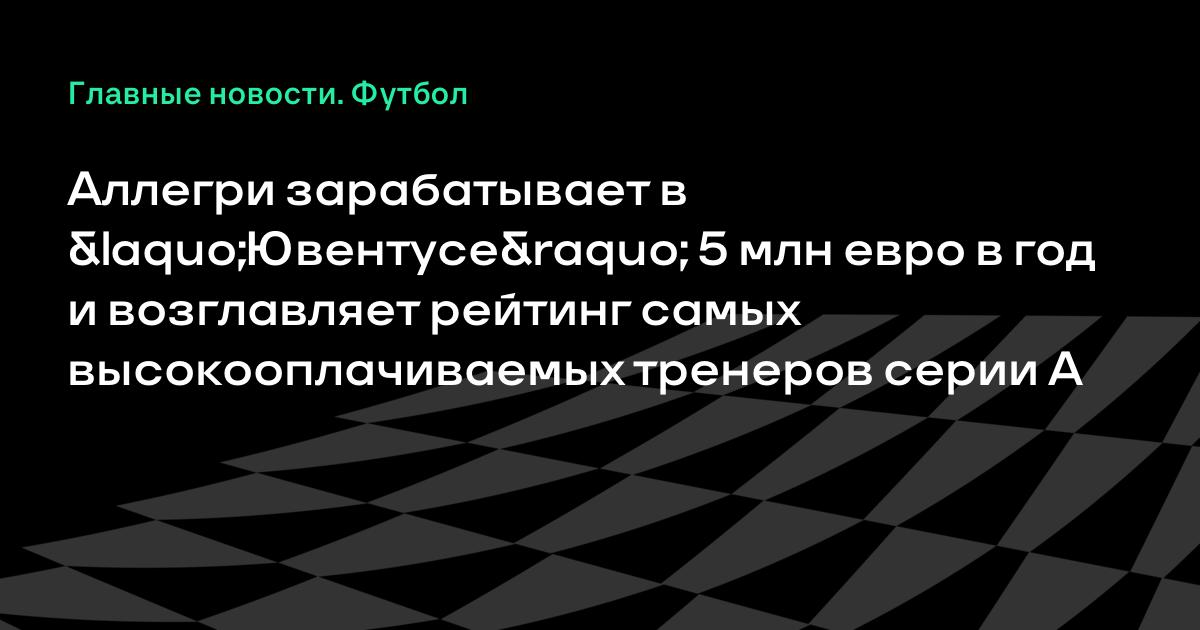 представило свежий рейтинг зарплат футболистов и тренеров серии А.Самым высокооплачиваемым тренером турнира является Массимилиано Аллегри, возглавляющий «Ювентус». Он зарабатывает 5 миллионов евро в год.