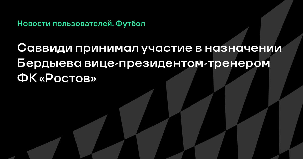 По сведениям ТАСС, Председатель совета директоров компании «Группы Агроком», спонсора «Ростова», Иван Саввиди принимал участие в назначении бывшего главного тренера футбольного клуба Курбана Бердыева на пост вице-президента-тренера команды.