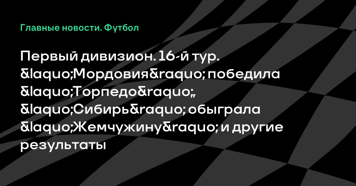 Первый дивизион. 16-й тур. «Мордовия» победила «Торпедо», «Сибирь» обыграла «Жемчужину» и другие результаты