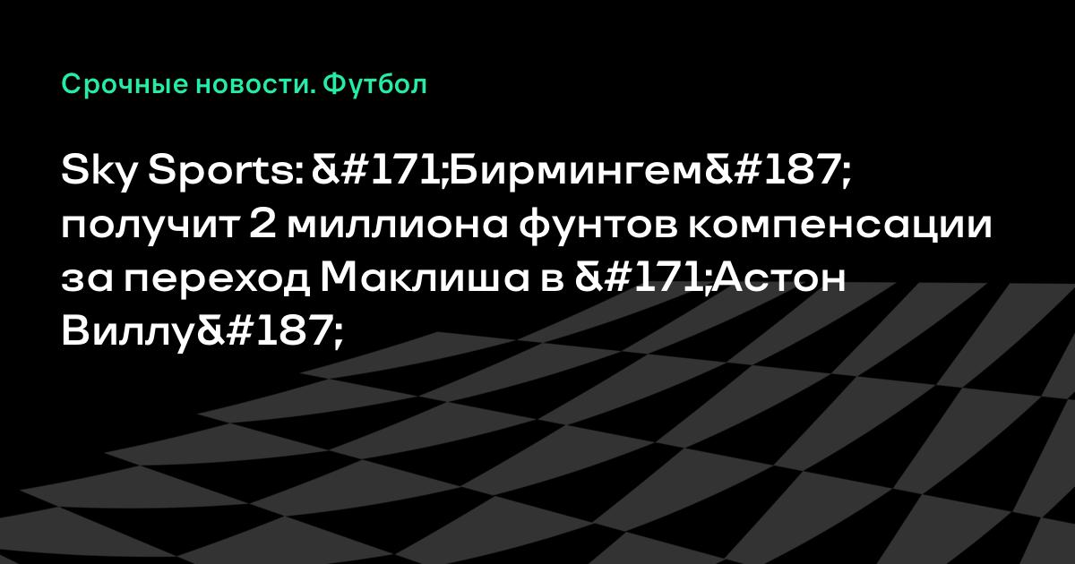 «Астон Вилла» согласилась заплатить компенсацию в размере 2 миллионов фунтов за услуги бывшего главного тренера «Бирмингема» Алекса Маклиша, сообщает Sky Sports.