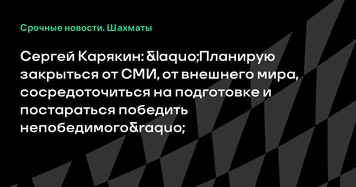Сергей Карякин: «Планирую закрыться от СМИ, от внешнего мира, сосредоточиться на подготовке и постараться победить непобедимого»