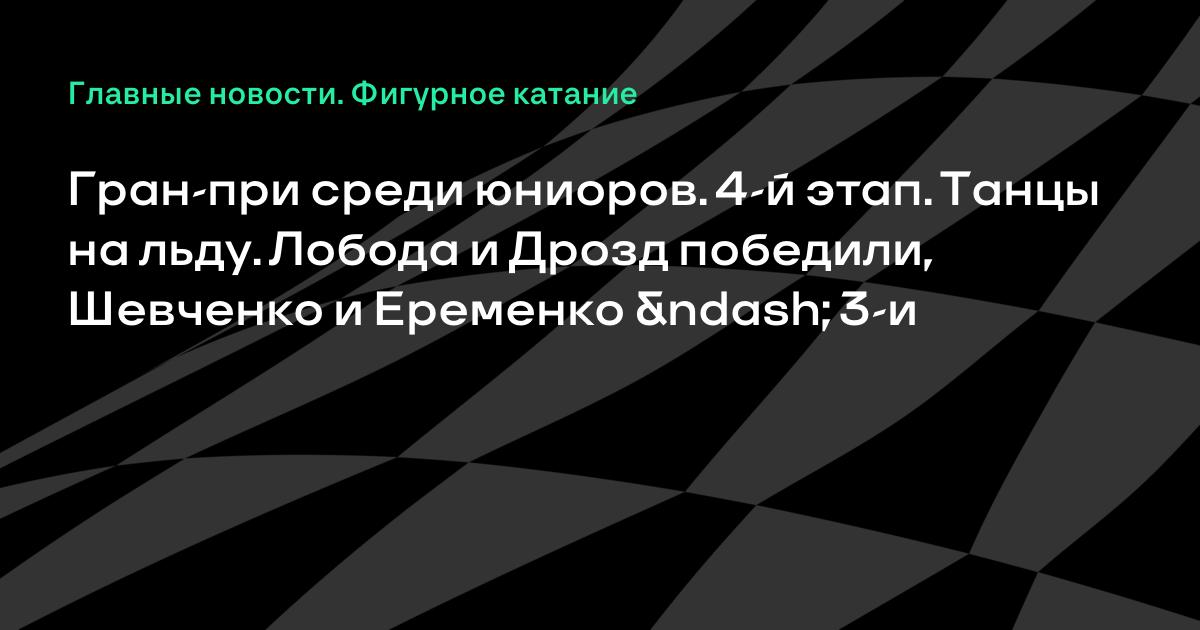 В Саранске завершился четвертый этап юниорского Гран-при по фигурному катанию. В соревнованиях танцевальных пар победу одержали россияне Алла Лобода и Павел Дрозд, Софья Шевченко и Игорь Еременко – 3-и.