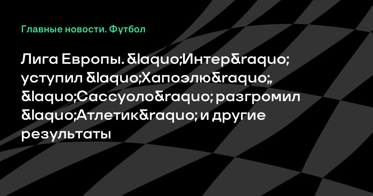 Лига Европы. «Интер» уступил «Хапоэлю», «Сассуоло» разгромил «Атлетик» и другие результаты