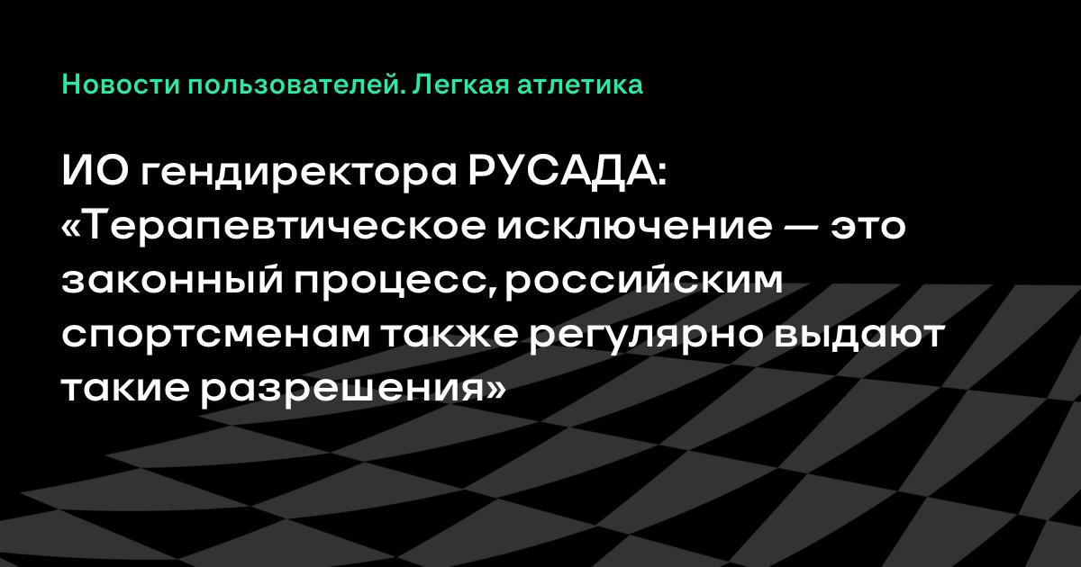 ИО гендиректора РУСАДА: «Терапевтическое исключение — это законный процесс, российским спортсменам также регулярно выдают такие разрешения»