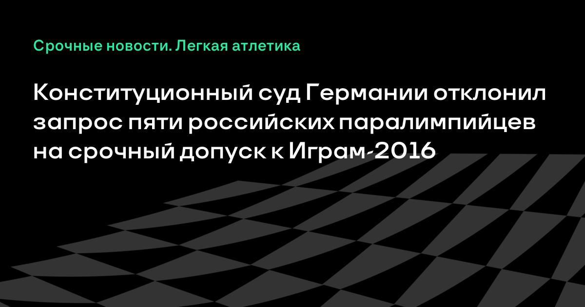 Верховный суд Германии отклонил запрос пяти российских спортсменов о срочном допуске к Паралимпиаде-2016.