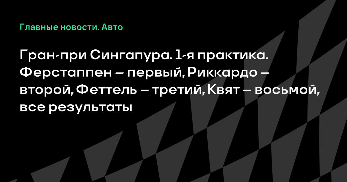 Гран-при Сингапура. 1-я практика. Ферстаппен – первый, Риккардо – второй, Феттель – третий, Квят – восьмой, все результаты