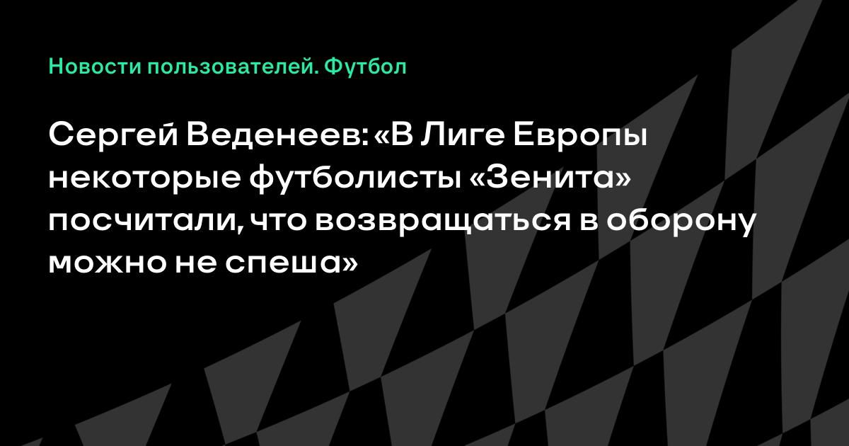 Сергей Веденеев: «В Лиге Европы некоторые футболисты «Зенита» посчитали, что возвращаться в оборону можно не спеша»