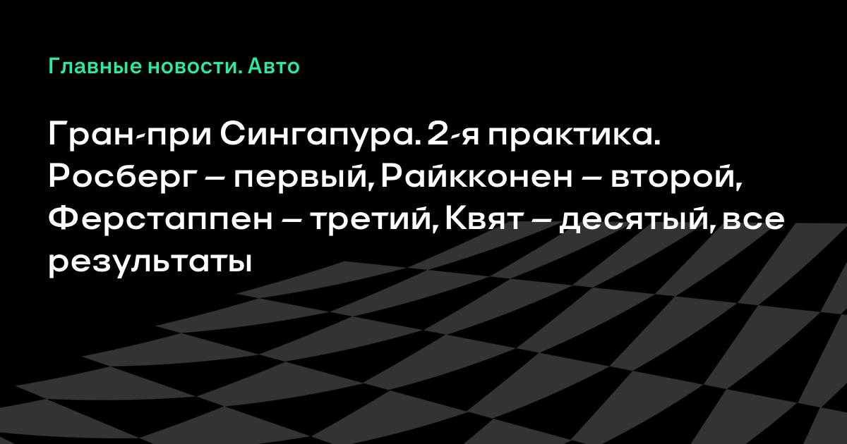 Гран-при Сингапура. 2-я практика. Росберг – первый, Райкконен – второй, Ферстаппен – третий, Квят – десятый, все результаты